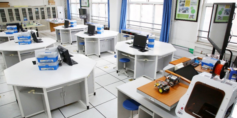 阿斑兔將機器人、創客、3D打印、航模等融為一體,研發、設計具有情景體驗、創意生成、原型制作、展示交流等多功能為一體的機器人教育教學場所,即創新教育實驗室,針對不同年齡段學生的特點、學校學情等,為其提供足夠的空間、設備和完善的課程體系。